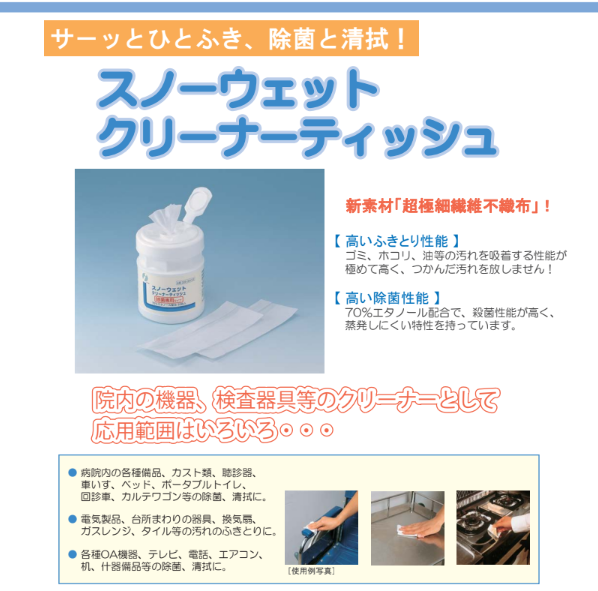 ・院内の機器、検査器具等のクリーナーとして応用範囲はいろいろです。